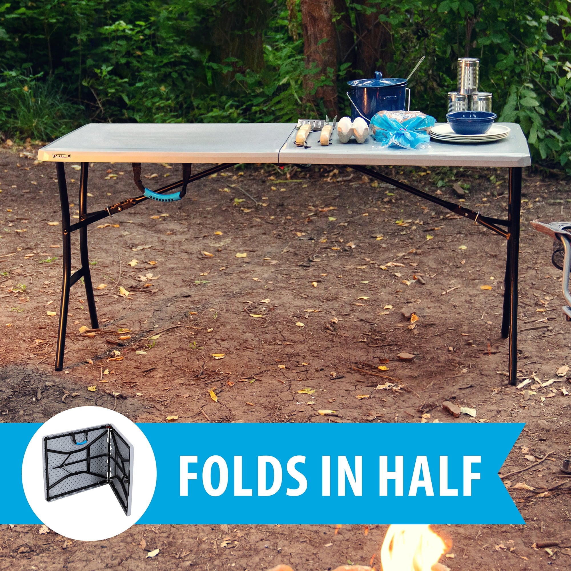 Lifetime 5 Foot Rectangle Fold-in-Half Table, Indoor/Outdoor Essential, Gray, 60.3" x 25.5" (80861)