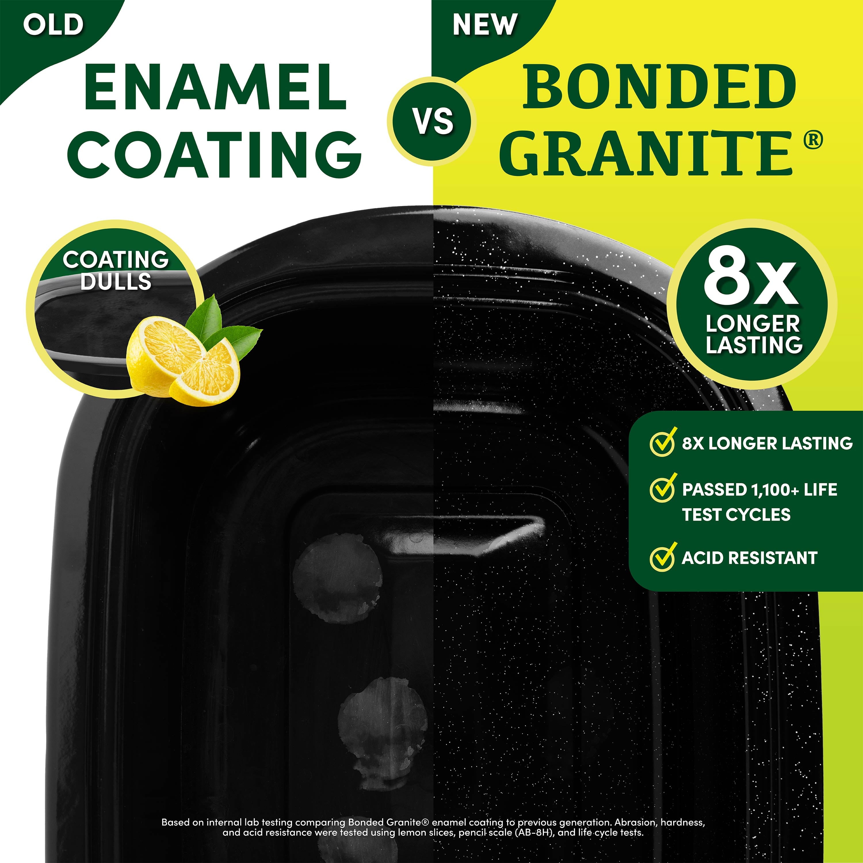 - NEW UPGRADE! 8X Bonded Granite Enamel Pan for superior cooking performance and easy cleanup