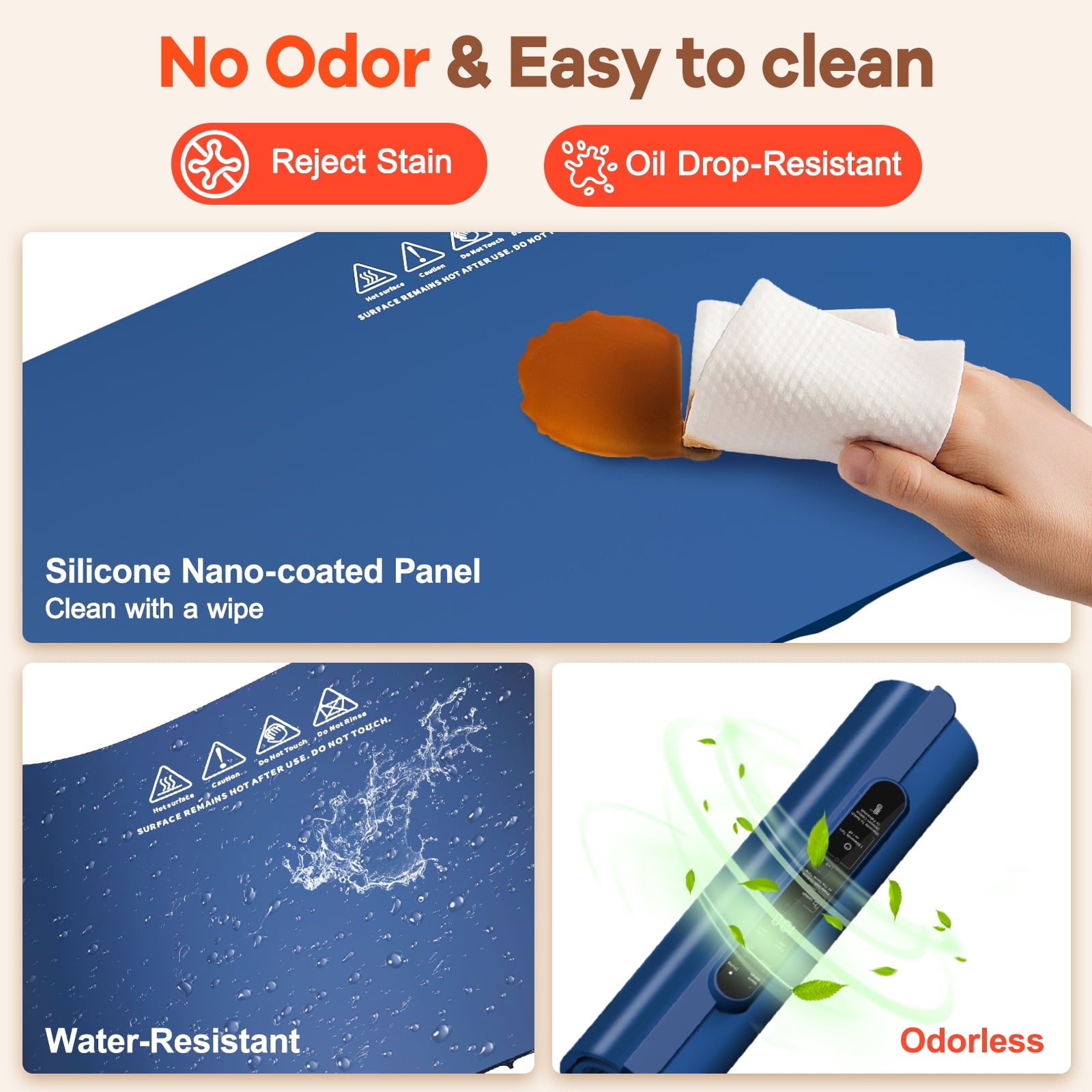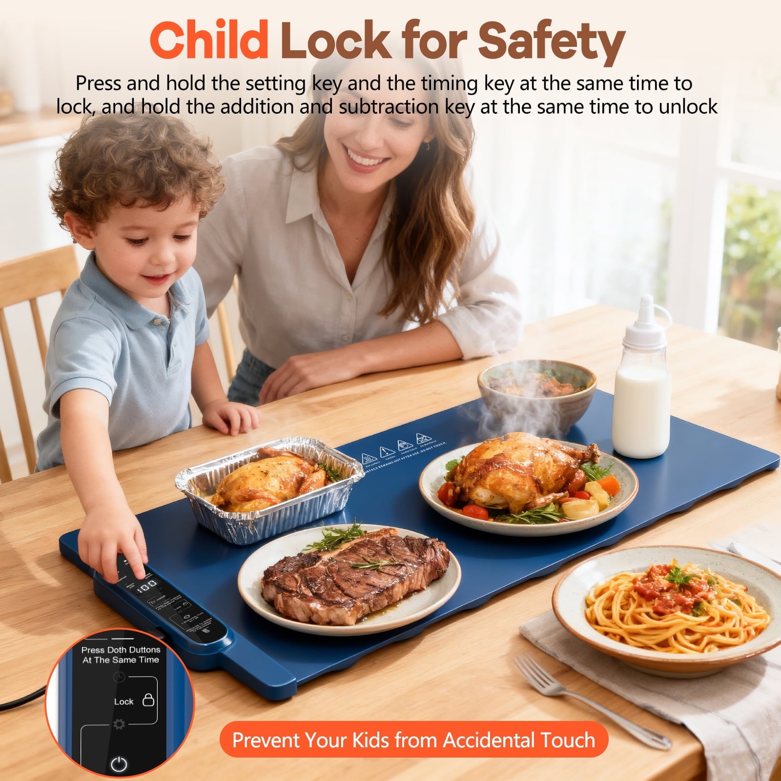 Hosting a cozy family dinner or holiday gathering? This electric warming tray heats in just 10 seconds, delivering even warmth across the whole surface. With 11 temperature levels and a 1–8 hour timer, it keeps every dish at the perfect heat. The nano-coated silicone wipes clean, rolls for compact storage, and features a safe child-lock design. Perfect for defrosting, dough proofing, and year-round home use