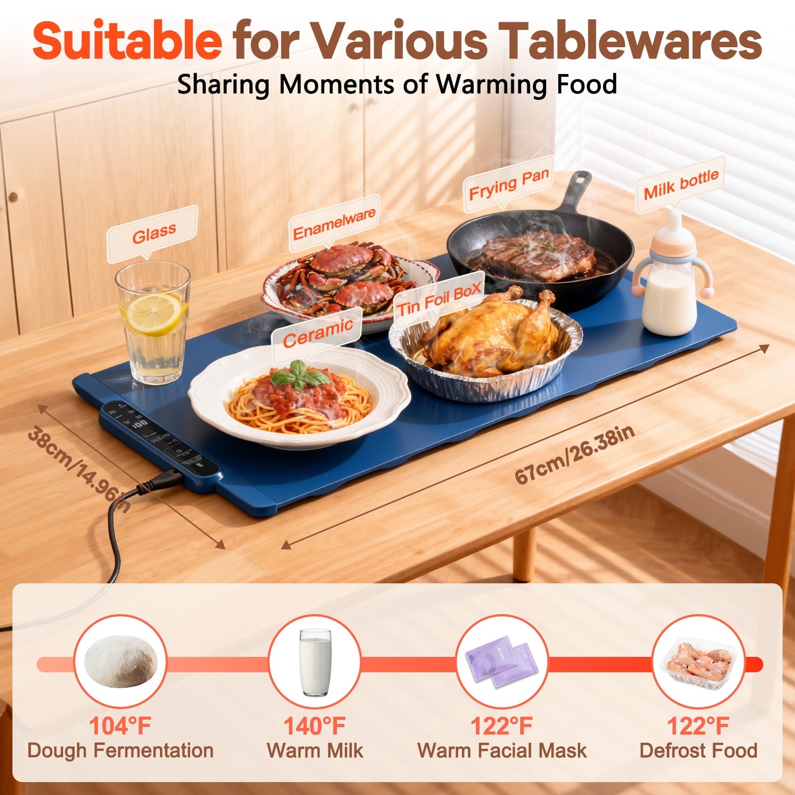 - 【Versatile Year-Round Use】Beyond serving as a Electric Warming Tray, our product is a versatile home assistant. Unlock a range of functionalities, from quick defrosting to warming facial masks and facilitating dough fermentation. Elevate your daily routine with a dynamic warming tray that adapts to your diverse needs throughout the year.