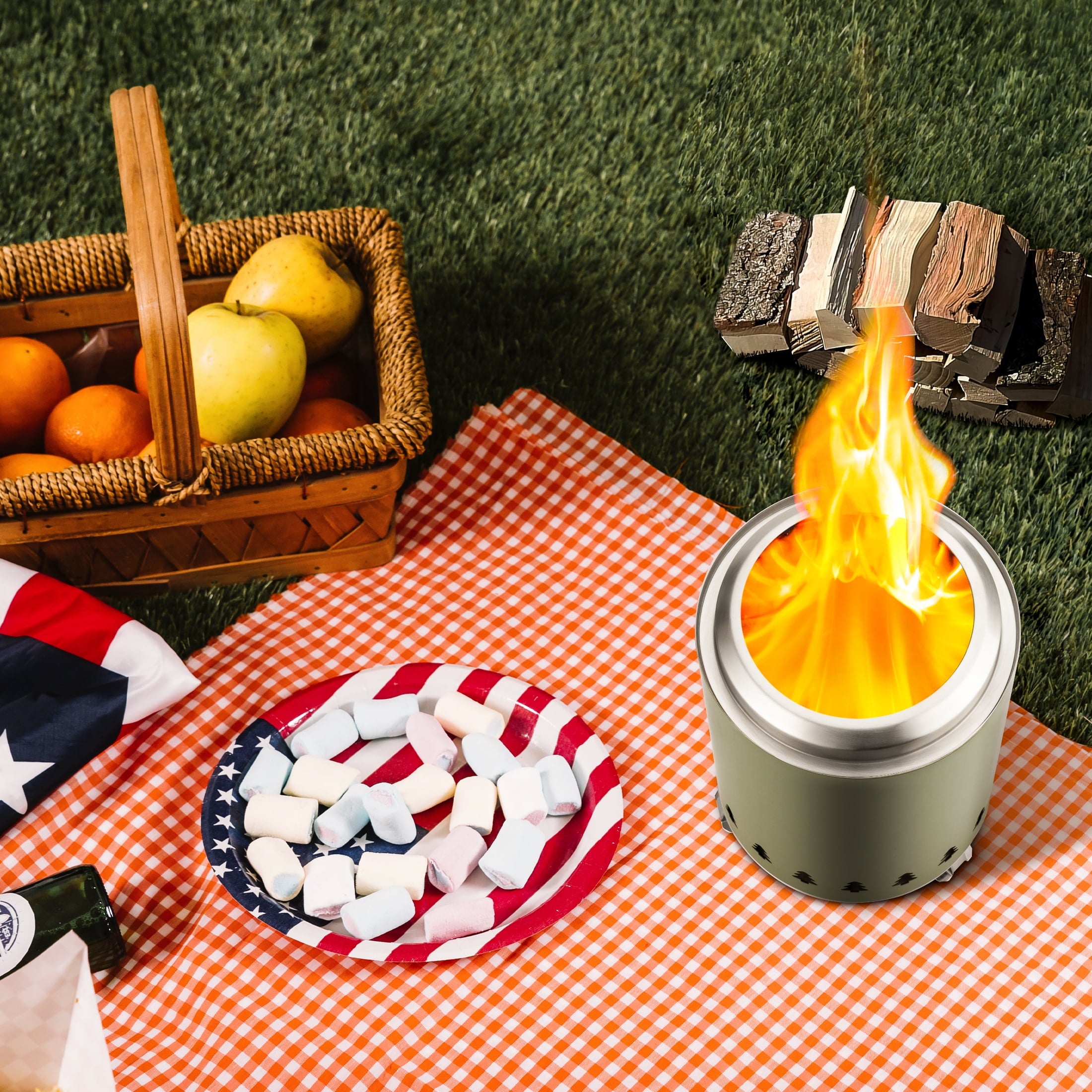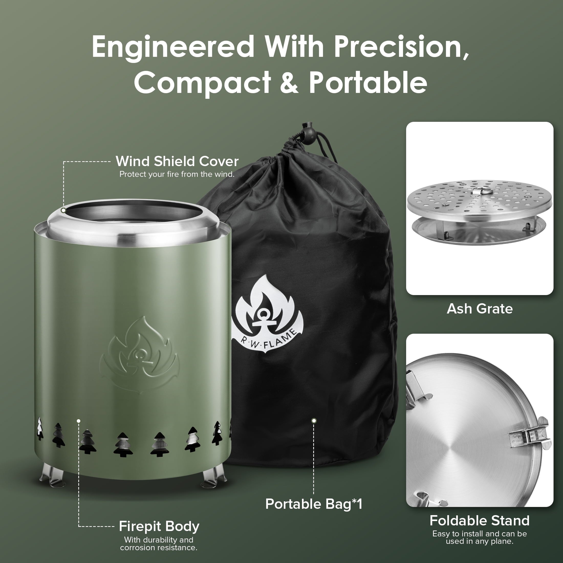Auseo Tabletop Fire Pit Smokeless Outdoor Mini Fire Compact & Portable Dual Fuel with Portable Bag, 304 Stainless Steel, Green