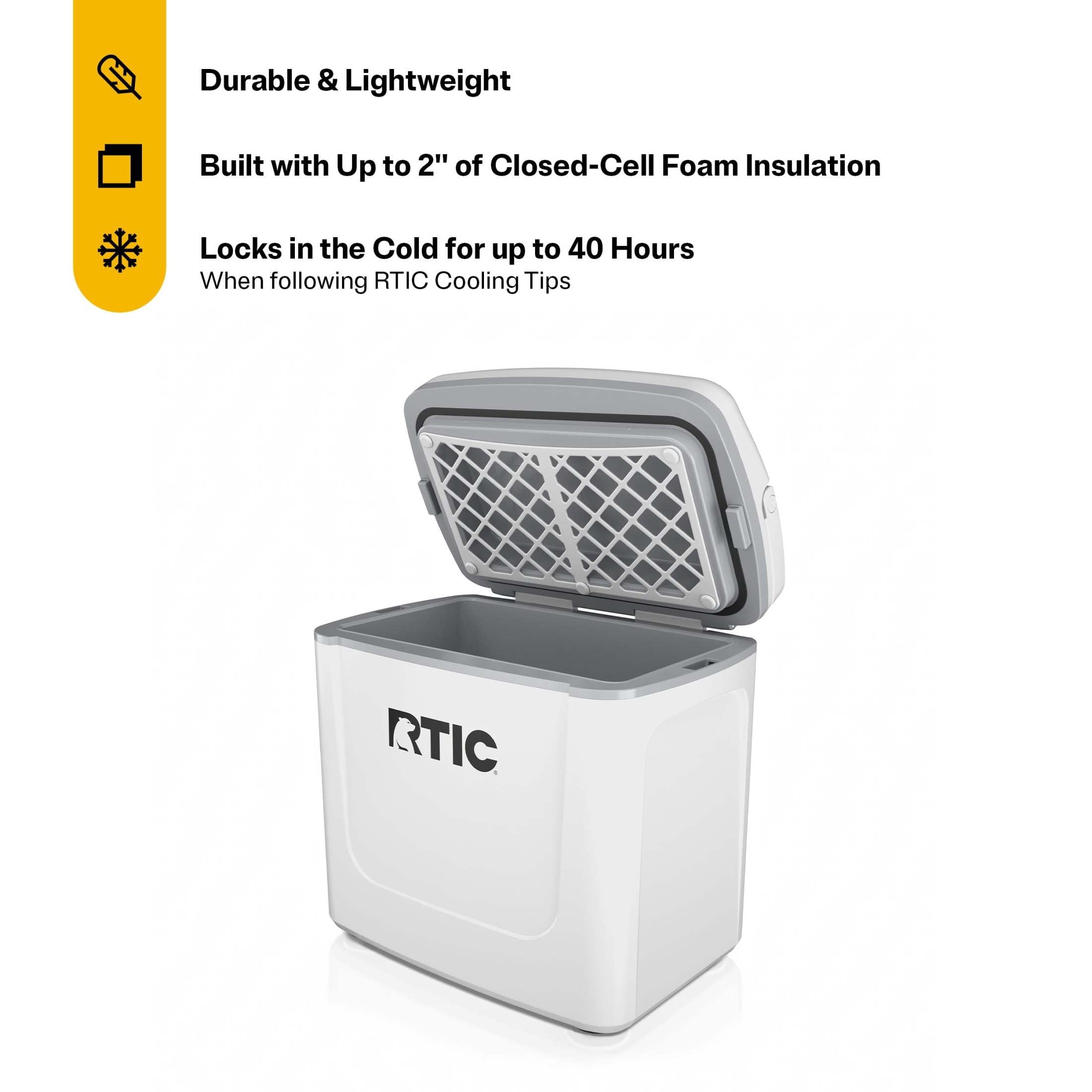 RTIC 8 QT, 12 Can Ice Chest Cooler Hard-Sided, White & Grey, Road Trip Personal Cooler