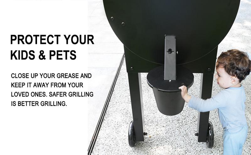 SAFE FOR KIDS & PETS - This grease bucket upgrade keeps grease securely contained, adding safety and improving the cleanliness of your Traeger smoker or wood pellet grill.