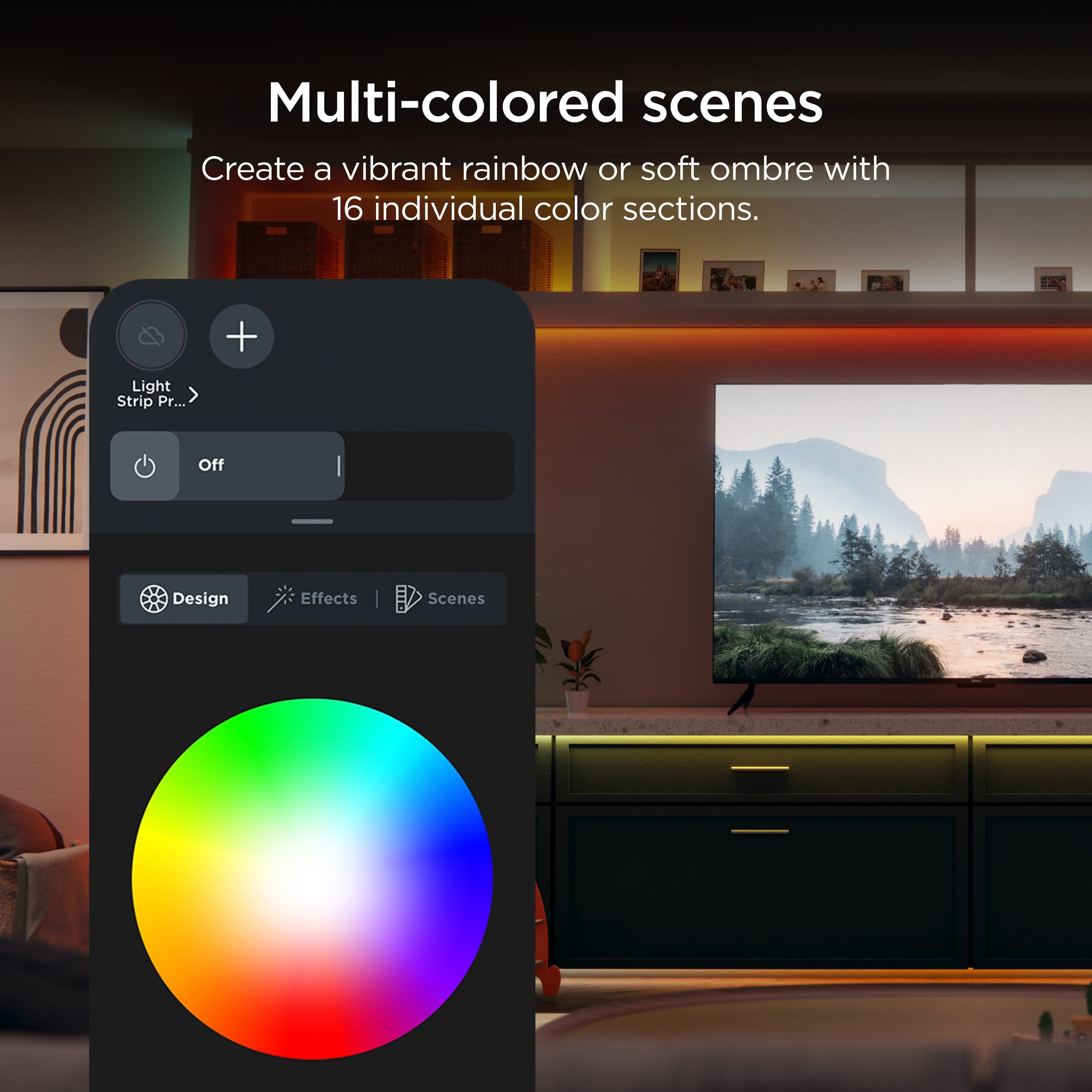 - Flexible lighting: Behind your TV, under your bed, across your ceiling—splash any indoor space with 16 million colors. Trimmable to fit your space.